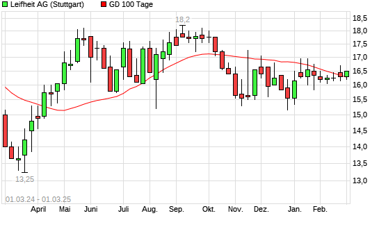 Mit dem Anstieg auf 16,30 EUR hat die Leifheit-Aktie am 28.02.2025 die 100-Tage-Linie nach oben gekreuzt.
