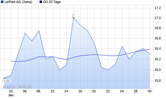Mit dem Anstieg auf 16,40 EUR hat die Leifheit-Aktie am 29.01.2025 die 20-Tage-Linie nach oben gekreuzt.