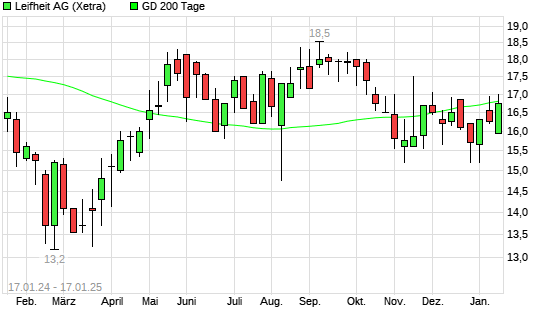 Mit dem Anstieg auf 16,95 EUR hat die Leifheit-Aktie am 16.01.2025 die 200-Tage-Linie nach oben gekreuzt.