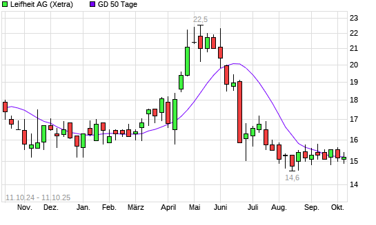 Mit dem Anstieg auf 15,40 EUR hat die Leifheit-Aktie am 10.10.2025 die 50-Tage-Linie nach oben gekreuzt.