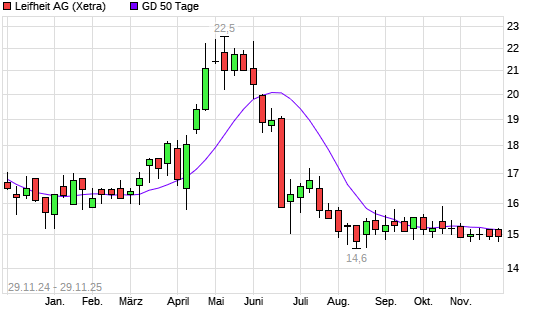 Mit dem Anstieg auf 15,15 EUR hat die Leifheit-Aktie am 28.11.2025 die 50-Tage-Linie nach oben gekreuzt.