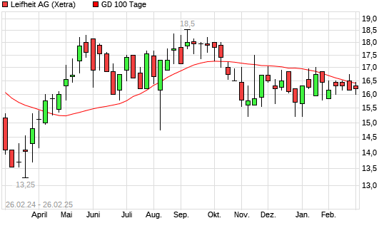 Mit dem Rücksetzer auf 16,20 EUR hat die Leifheit-Aktie am 25.02.2025 die 100-Tage-Linie nach unten gekreuzt.