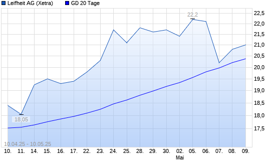 Mit dem Rücksetzer auf 20,50 EUR hat die Leifheit-Aktie am 09.05.2025 die 20-Tage-Linie nach unten gekreuzt.