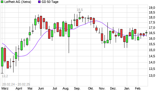 Mit dem Rücksetzer auf 15,90 EUR hat die Leifheit-Aktie am 19.02.2025 die 50-Tage-Linie nach unten gekreuzt.