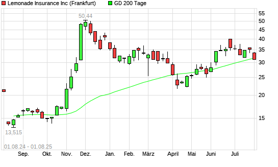 Mit dem Anstieg auf 32,97 EUR hat die Lemonade-Aktie am 31.07.2025 die 200-Tage-Linie nach oben gekreuzt.