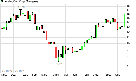 Mit dem Anstieg auf 15,63 EUR hat die LendingClub Corp-Aktie (ISIN US52603A2087) am 24.10.2025 ein neues 6-Monats-Hoch erreicht und damit den Kurs vom 23.10.2025 eingestellt.