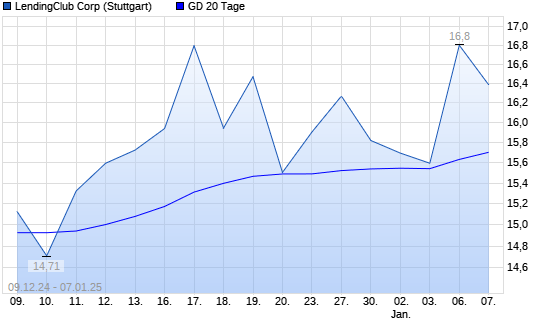 Mit dem Anstieg auf 17,23 EUR hat die LendingClub Corp-Aktie am 06.01.2025 die 20-Tage-Linie nach oben gekreuzt.