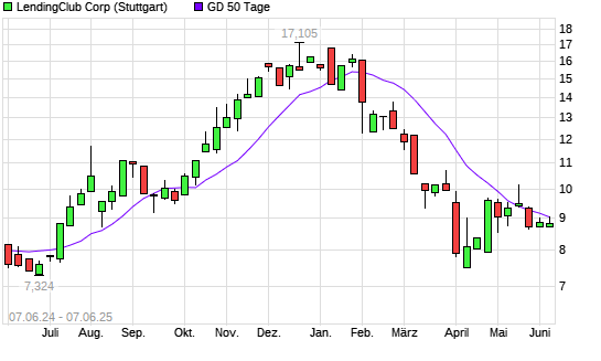 Mit dem Rücksetzer auf 8,79 EUR hat die LendingClub Corp-Aktie am 06.06.2025 die 50-Tage-Linie nach unten gekreuzt.