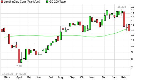 Mit dem Rücksetzer auf 12,75 EUR hat die LendingClub Corp-Aktie am 13.02.2026 die 200-Tage-Linie nach unten gekreuzt.Die LendingClub Corp-Aktie befand sich seit dem 06.02.2026 im langfristigen ...weiterlesen