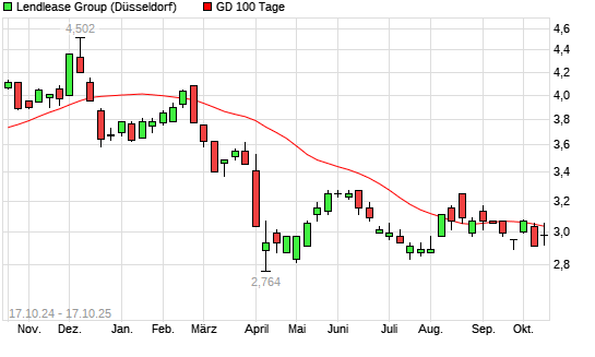 Mit dem Anstieg auf 3,00 EUR hat die Lendlease Group-Aktie am 16.10.2025 die 100-Tage-Linie nach oben gekreuzt.
