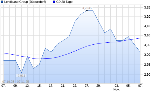 Mit dem Rücksetzer auf 3,04 EUR hat die Lendlease Group-Aktie am 06.11.2025 die 20-Tage-Linie nach unten gekreuzt.