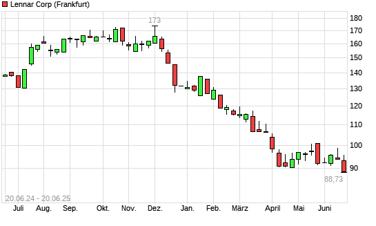 Mit dem Rücksetzer auf 89,49 EUR hat die Lennar-Aktie (ISIN US5260571048) am 19.06.2025 ein neues 12-Monats-Tief erreicht und damit den Kurs vom 18.06.2025 eingestellt.