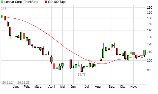 Mit dem Anstieg auf 107,20 EUR hat die Lennar-Aktie am 25.11.2025 die 100-Tage-Linie nach oben gekreuzt.