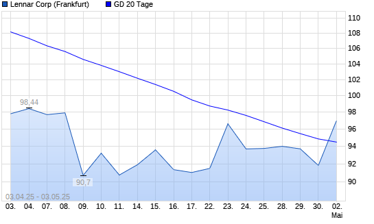 Mit dem Anstieg auf 97,00 EUR hat die Lennar-Aktie am 02.05.2025 die 20-Tage-Linie nach oben gekreuzt.
