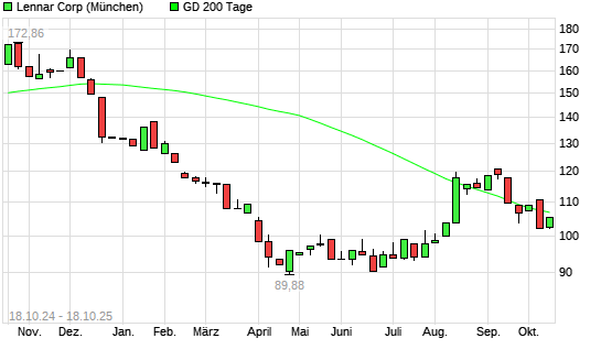 Mit dem Anstieg auf 105,84 EUR hat die Lennar-Aktie am 17.10.2025 die 200-Tage-Linie nach oben gekreuzt.
