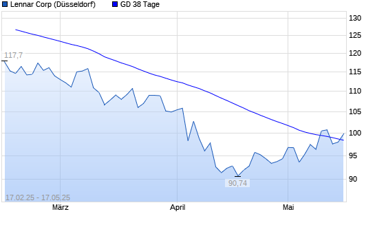 Mit dem Anstieg auf 97,39 EUR hat die Lennar-Aktie am 16.05.2025 die 38-Tage-Linie nach oben gekreuzt.
