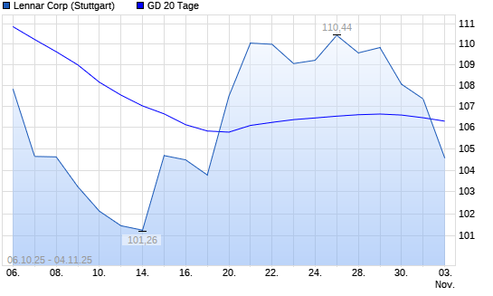 Mit dem Rücksetzer auf 104,78 EUR hat die Lennar-Aktie am 03.11.2025 die 20-Tage-Linie nach unten gekreuzt.
