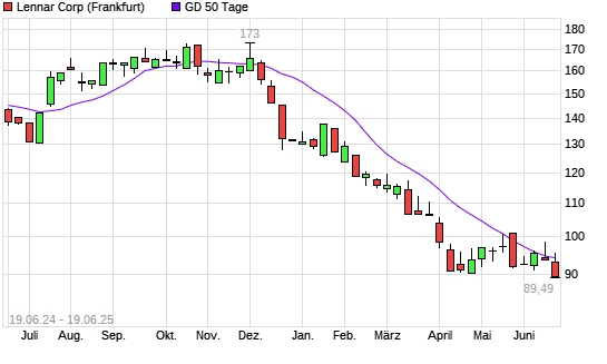Mit dem Rücksetzer auf 90,59 EUR hat die Lennar-Aktie am 18.06.2025 die 50-Tage-Linie nach unten gekreuzt.