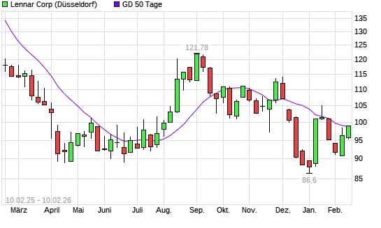 Mit dem Rücksetzer auf 93,69 EUR hat die Lennar-Aktie am 09.02.2026 die 50-Tage-Linie nach unten gekreuzt.