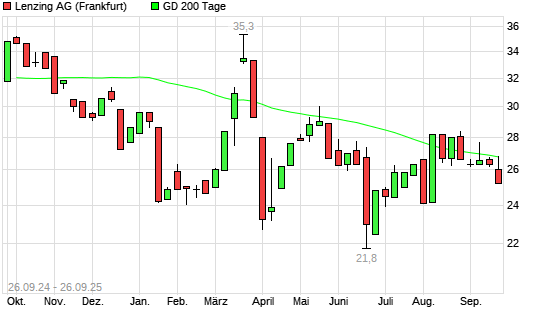 Mit dem Anstieg auf 26,80 EUR hat die Lenzing AG-Aktie am 25.09.2025 die 200-Tage-Linie nach oben gekreuzt.