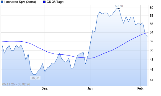 Mit dem Rücksetzer auf 53,78 EUR hat die Leonardo-Aktie am 04.02.2026 die 38-Tage-Linie nach unten gekreuzt.