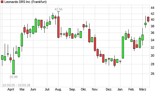 Mit dem Anstieg auf 41,04 EUR hat die Leonardo DRS-Aktie (ISIN US52661A1088) am 09.03.2026 ein neues 6-Monats-Hoch erreicht und damit den Kurs vom 02.03.2026 eingestellt.Die ...weiterlesen
