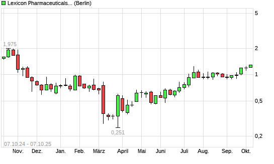 Mit dem Anstieg auf 1,29 EUR hat die Lexicon Pharmaceuticals-Aktie (ISIN US5288723027) am 06.10.2025 ein neues 6-Monats-Hoch erreicht und damit den Kurs vom 03.10.2025 eingestellt.