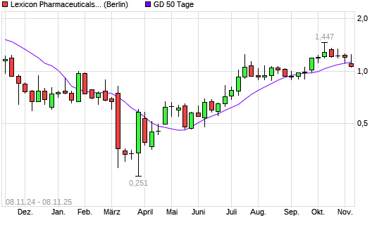 Mit dem Rücksetzer auf 1,07 EUR hat die Lexicon Pharmaceuticals-Aktie am 07.11.2025 die 50-Tage-Linie nach unten gekreuzt.Die Lexicon Pharmaceuticals-Aktie befindet sich seit dem 08.07.2025 ...weiterlesen