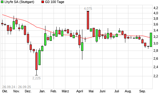 Mit dem Anstieg auf 3,22 EUR hat die Lhyfe-Aktie am 25.09.2025 die 100-Tage-Linie nach oben gekreuzt.