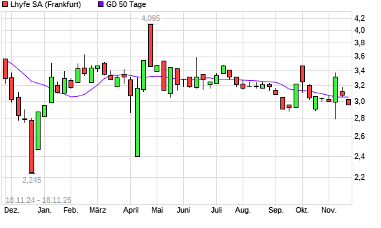 Mit dem Rücksetzer auf 3,02 EUR hat die Lhyfe-Aktie am 17.11.2025 die 50-Tage-Linie nach unten gekreuzt.