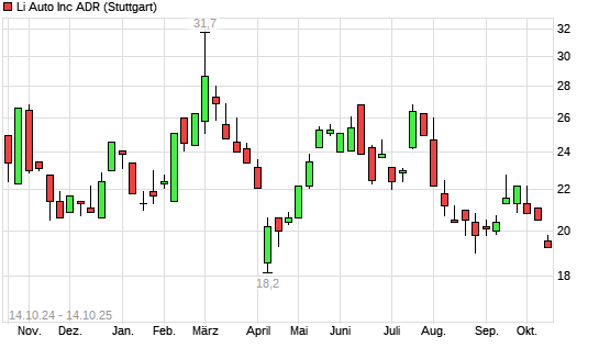 Mit dem Rücksetzer auf 19,40 EUR hat die Li Auto-Aktie (ISIN US50202M1027) am 13.10.2025 ein neues 6-Monats-Tief erreicht und damit den Kurs vom 27.08.2025 eingestellt.