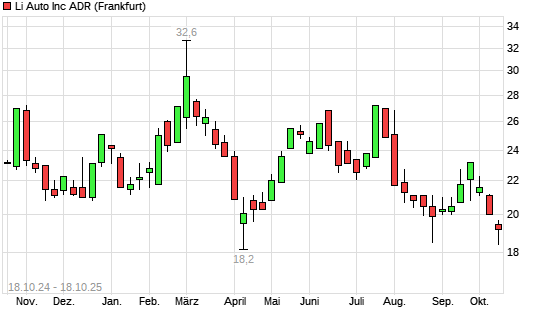 Mit dem Rücksetzer auf 19,20 EUR hat die Li Auto-Aktie (ISIN US50202M1027) am 17.10.2025 ein neues 6-Monats-Tief erreicht und damit den Kurs vom 14.10.2025 eingestellt.