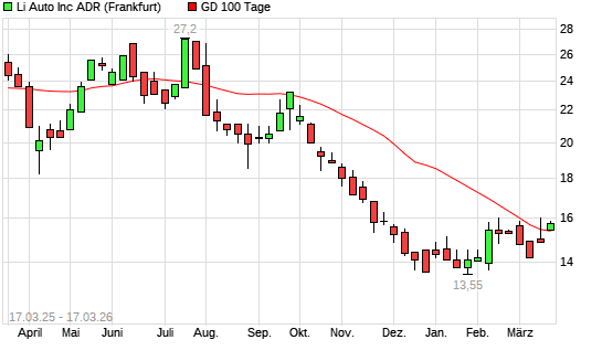 Mit dem Anstieg auf 15,40 EUR hat die Li Auto-Aktie am 16.03.2026 die 100-Tage-Linie nach oben gekreuzt.