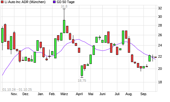 Mit dem Anstieg auf 22,10 EUR hat die Li Auto-Aktie am 30.09.2025 die 50-Tage-Linie nach oben gekreuzt.