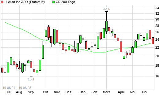 Mit dem Rücksetzer auf 23,30 EUR hat die Li Auto-Aktie am 18.06.2025 die 200-Tage-Linie nach unten gekreuzt.