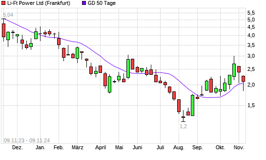 Mit dem Anstieg auf 2,10 EUR hat die Li-Ft Power-Aktie am 08.11.2024 die 50-Tage-Linie nach oben gekreuzt.