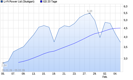 Mit dem Rücksetzer auf 4,20 EUR hat die Li-Ft Power-Aktie am 04.02.2026 die 20-Tage-Linie nach unten gekreuzt.