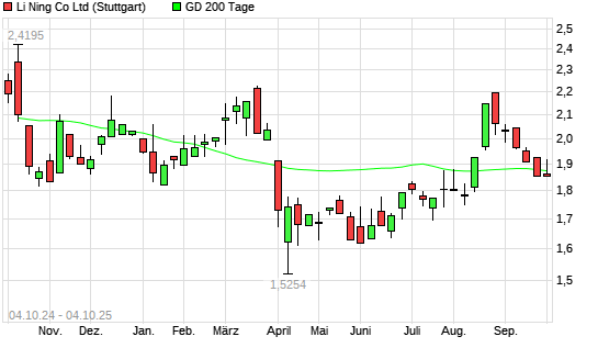 Mit dem Rücksetzer auf 1,86 EUR hat die Li Ning Co-Aktie am 03.10.2025 die 200-Tage-Linie nach unten gekreuzt.
