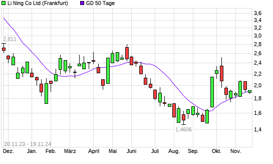 Mit dem Rücksetzer auf 1,89 EUR hat die Li Ning Co-Aktie am 18.11.2024 die 50-Tage-Linie nach unten gekreuzt.