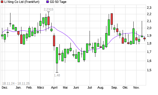 Mit dem Rücksetzer auf 1,89 EUR hat die Li Ning Co-Aktie am 17.11.2025 die 50-Tage-Linie nach unten gekreuzt.