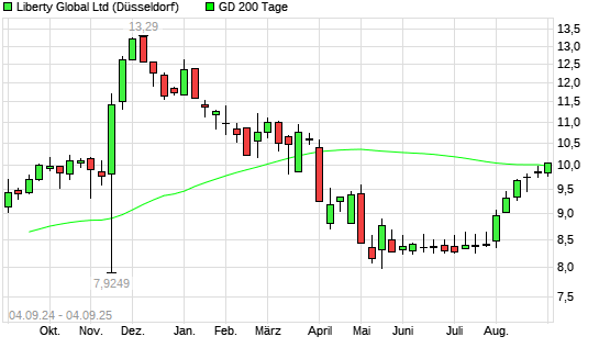 Mit dem Anstieg auf 9,99 EUR hat die Liberty Global-Aktie am 03.09.2025 die 200-Tage-Linie nach oben gekreuzt.