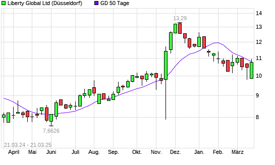 Mit dem Anstieg auf 10,92 EUR hat die Liberty Global-Aktie am 20.03.2025 die 50-Tage-Linie nach oben gekreuzt.