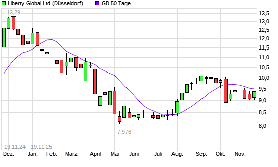Mit dem Anstieg auf 9,30 EUR hat die Liberty Global-Aktie am 18.11.2025 die 50-Tage-Linie nach oben gekreuzt.