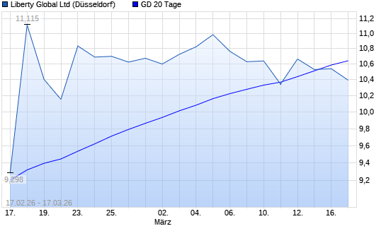 Mit dem Rücksetzer auf 10,11 EUR hat die Liberty Global-Aktie am 16.03.2026 die 20-Tage-Linie nach unten gekreuzt.