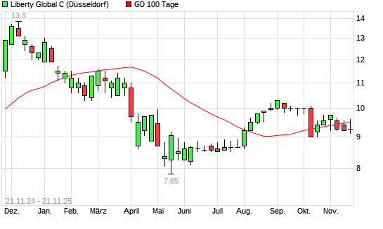 Mit dem Anstieg auf 9,30 EUR hat die Liberty Global C-Aktie am 20.11.2025 die 100-Tage-Linie nach oben gekreuzt.