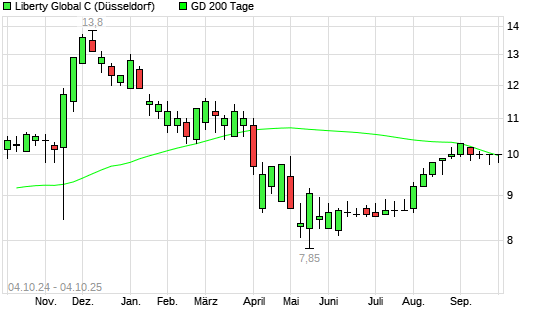 Mit dem Rücksetzer auf 9,75 EUR hat die Liberty Global C-Aktie am 03.10.2025 die 200-Tage-Linie nach unten gekreuzt.