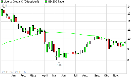 Mit dem Anstieg auf 9,50 EUR hat die Liberty Global C-Aktie am 26.11.2025 die 200-Tage-Linie nach oben gekreuzt.Die Liberty Global C-Aktie befand sich seit dem 31.10.2025 im langfristigen Aufwärtstrend ...weiterlesen