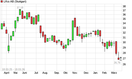 Mit dem Rücksetzer auf 26,84 EUR hat die Lifco-Aktie (ISIN SE0015949201) am 17.03.2026 ein neues 12-Monats-Tief erreicht und damit den Kurs vom 16.03.2026 eingestellt.Die ...weiterlesen