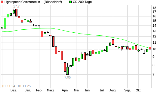 Mit dem Rücksetzer auf 10,10 EUR hat die Lightspeed Commerce-Aktie am 31.10.2025 die 200-Tage-Linie nach unten gekreuzt.