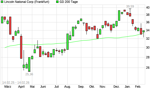 Mit dem Anstieg auf 33,88 EUR hat die Lincoln National-Aktie am 13.02.2026 die 200-Tage-Linie nach oben gekreuzt.
